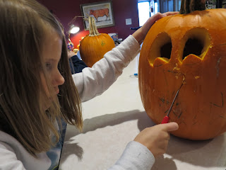 Speaking of pumpkins, I'm pretty sure we need a new pumpkin knife cause ours sucks and I almost lost multiple fingers while trying to make Jack O' Lanterns this year. Let's just say our household knives are SHARP and dangerous and well...my knife wielding husband wasn't here for that part.