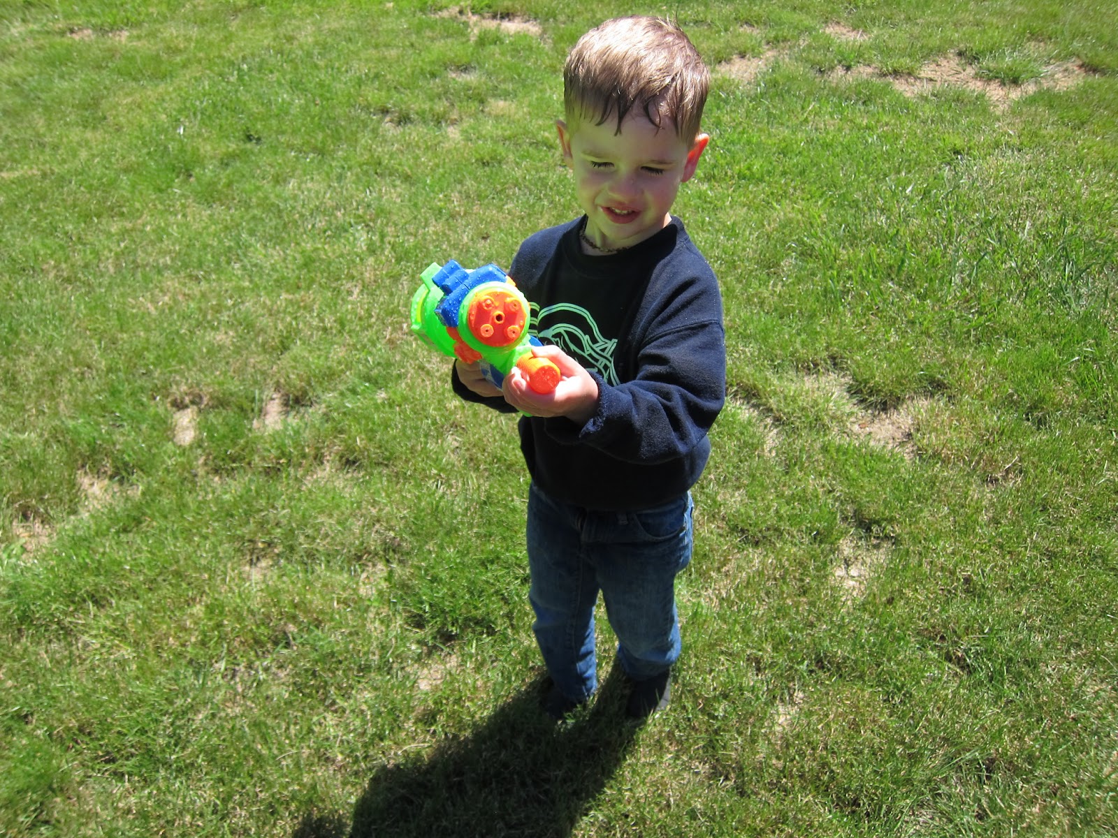 And there was....her Dad and brother armed with squirt guns. Since it was only like 63 degrees on Friday, it was WARM water.